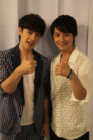 そんな中での瑛ちゃんとのツーショット♪それでも徹平君は、少ない空き時間で、コーヒー片手にリハーサルの映像をチェックしてました♪